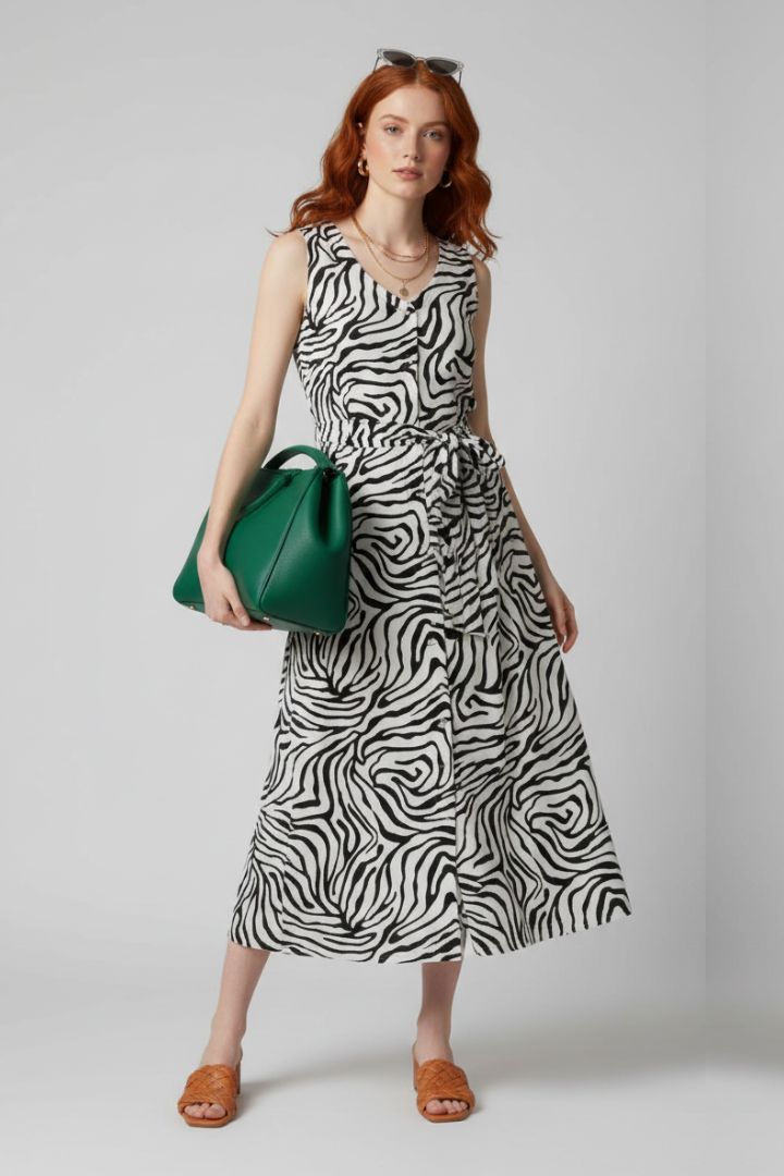 Abito smanicato in fantasia, chemisier con cintura