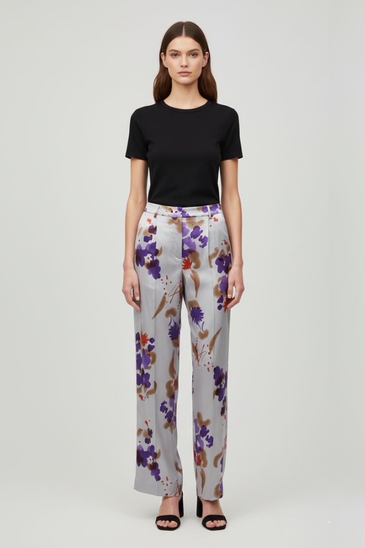 Pantalone in stampa fiore astratta in seta