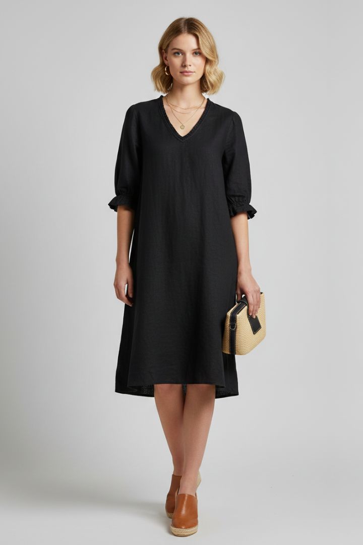 Abito scollo a V con arricciature nello scollo e nelle maniche