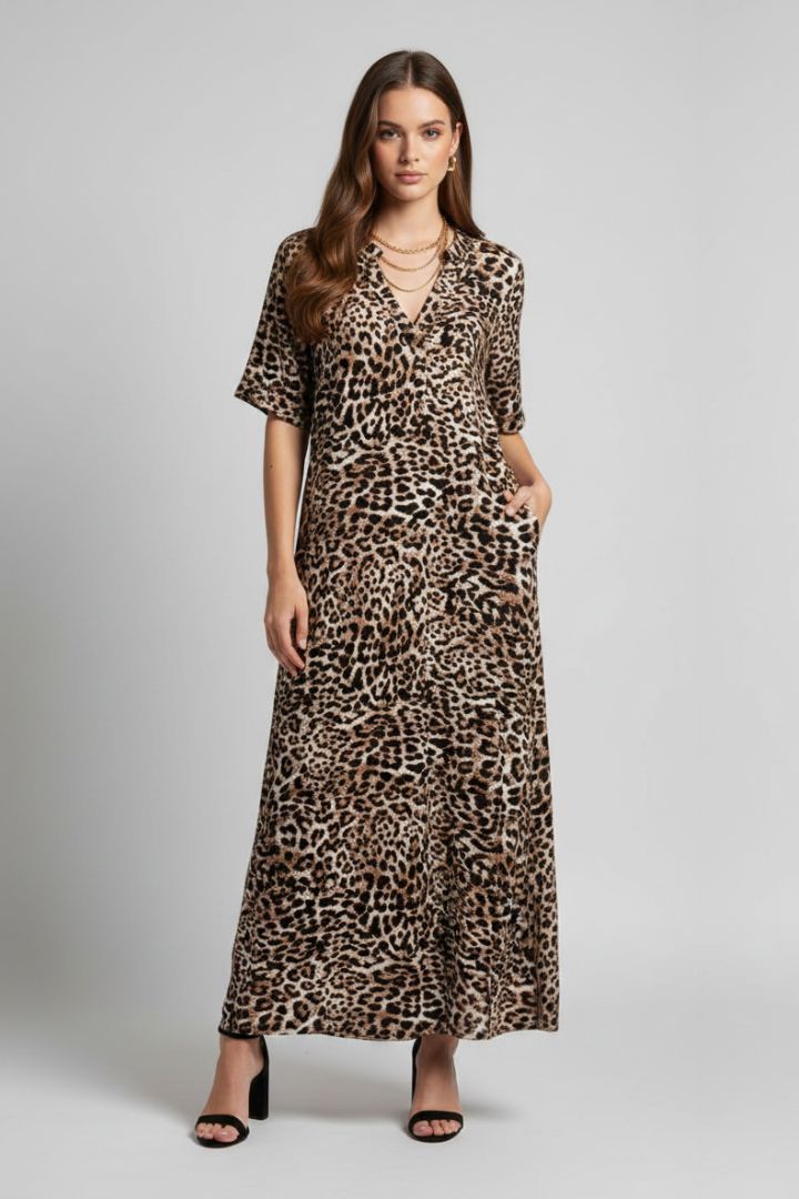 Abito lungo a mezza manica in stampa maculato