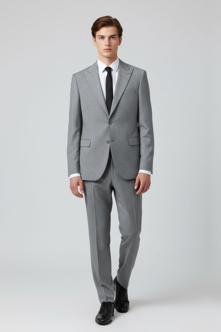 Abito monopetto, petto a lancia in grigio chiaro