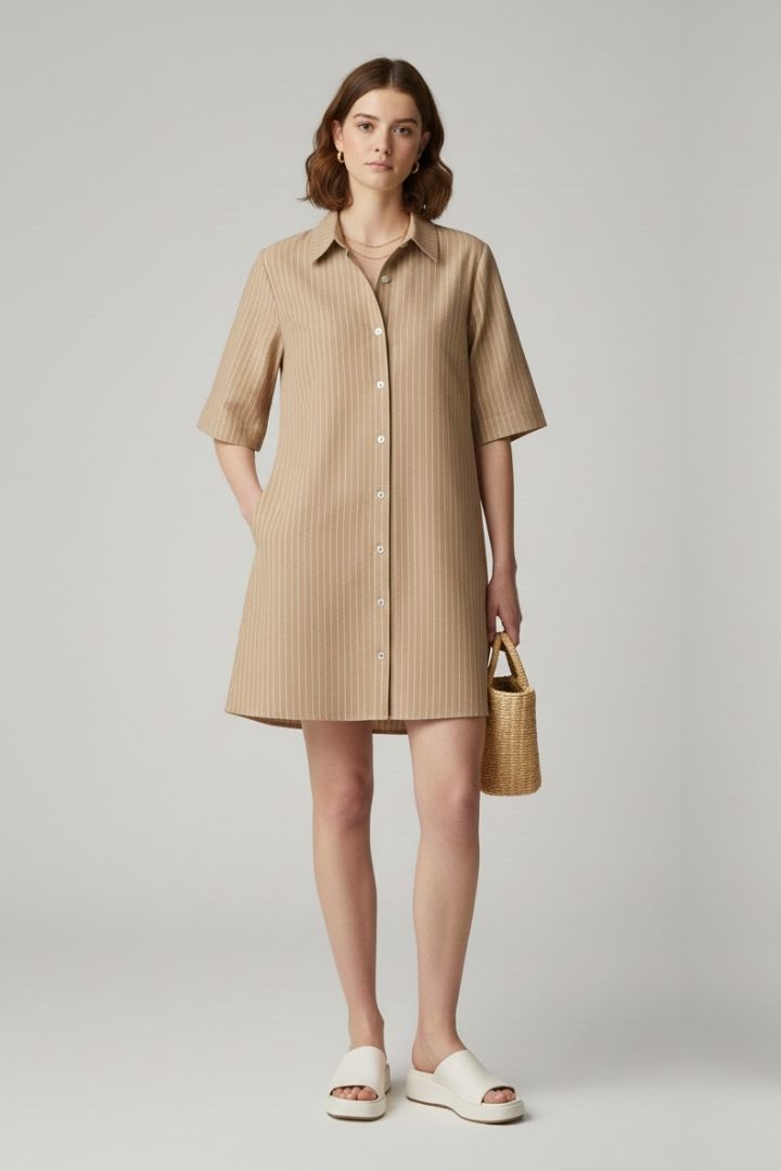 Abito chemisier collo a camicia a mezza manica in tessuto sostenuto