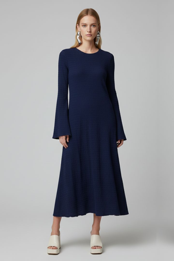 Abito lungo con maniche svasate in tessuto micro lavorato