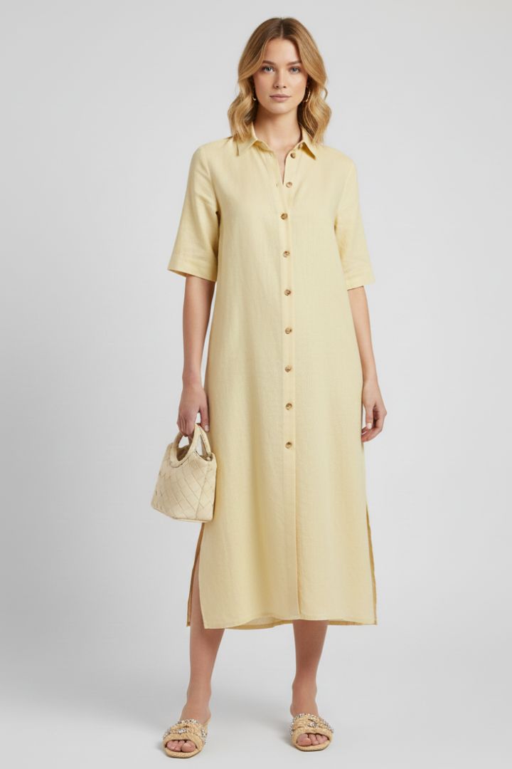 Abito chemisier scollo a V con cintura
