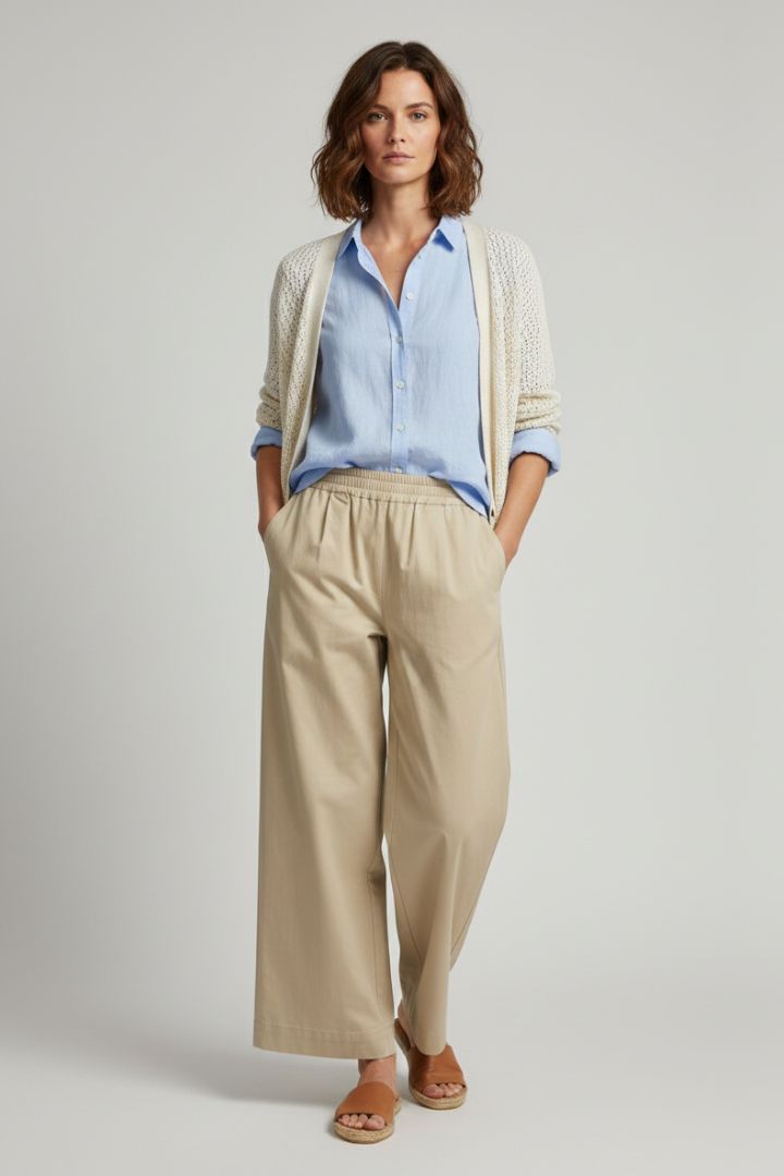 PANTALONE AMPIO CON ELASTICO IN VITA IN RASO PURO COTONE