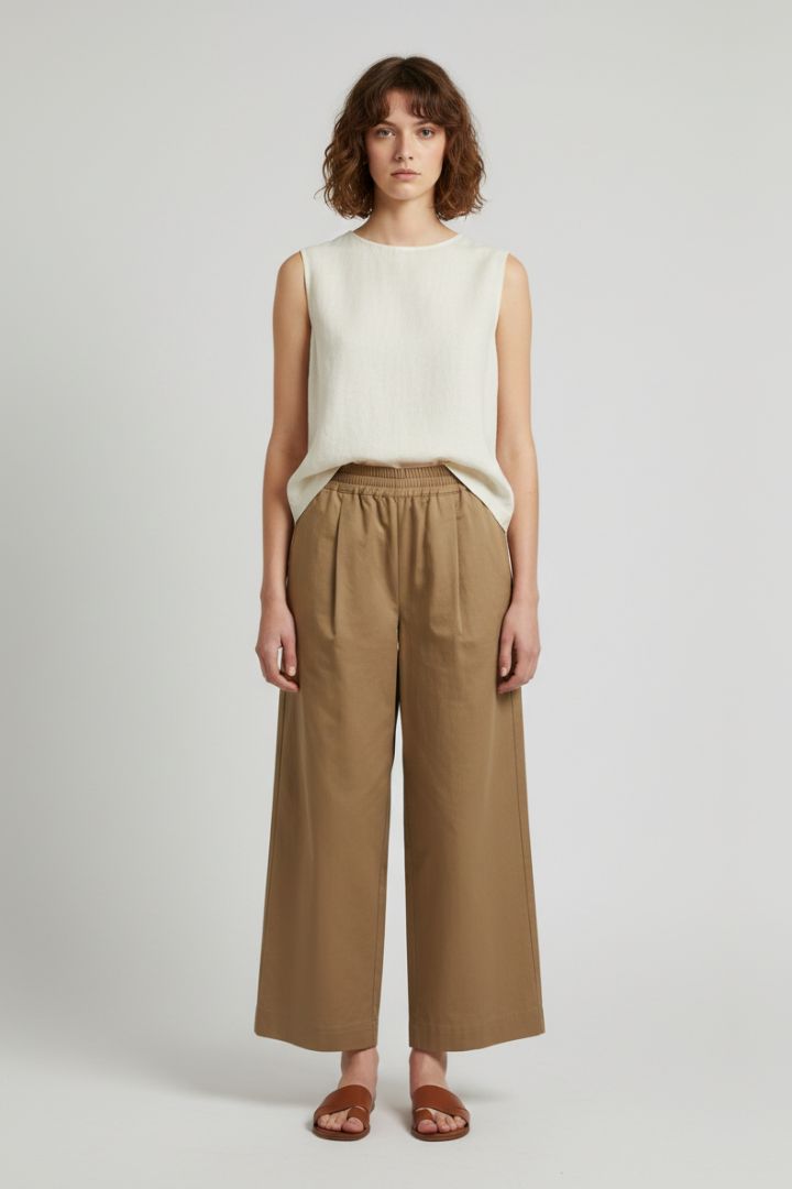 PANTALONE AMPIO CON ELASTICO IN VITA IN RASO PURO COTONE