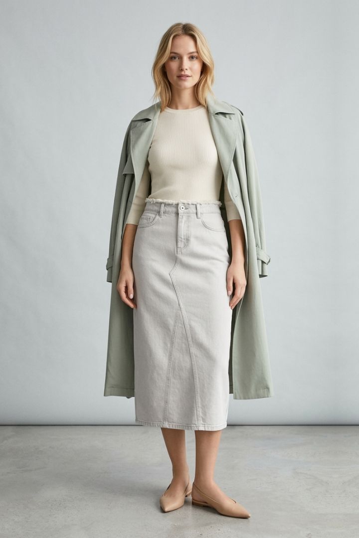 Gonna in denim con sfrangiatura in vita
