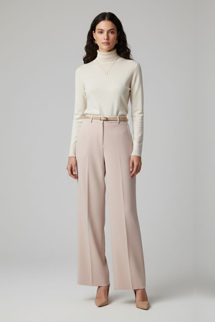 PANTALONE LARGO IN CADY CON CINTURA