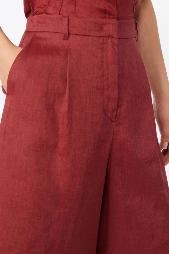 Pantalone bermuda wide leg con pinces in vita sul davanti.