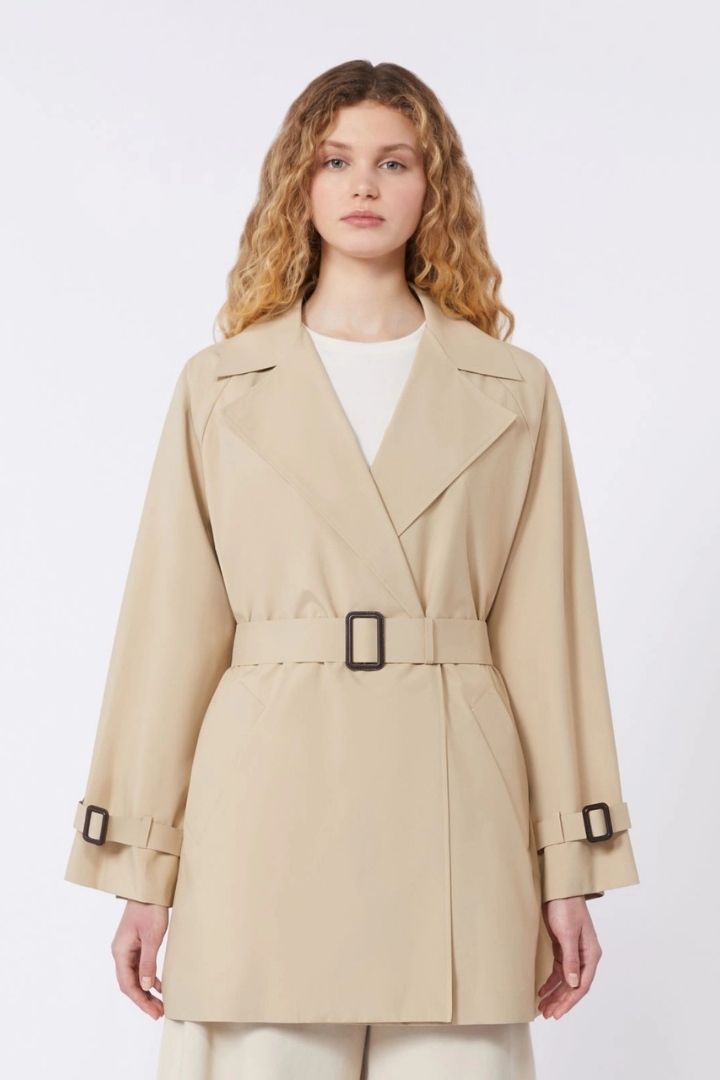 TRENCH CORTO DOPPIOPETTO CINTURATO TELA MICROFIBRA ANTIGOCCIA