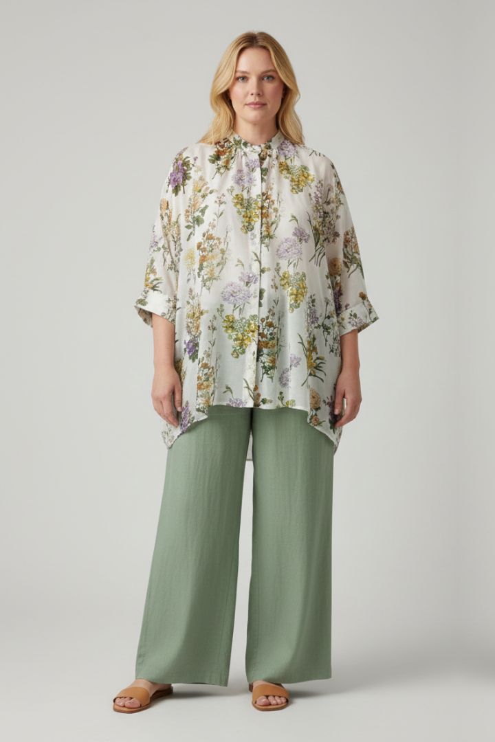 CAMICIA MANICA 3/4 VOILE DI COTONE/SETA STAMPA FIORI