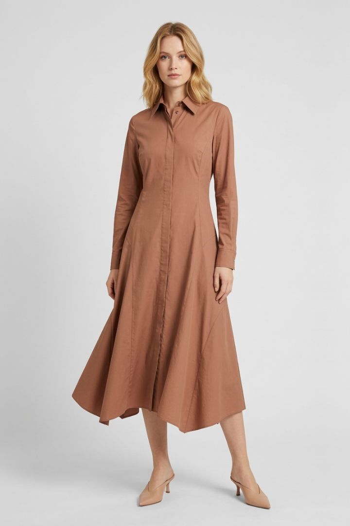 Abito in cotone, a manica lunga, chemisier