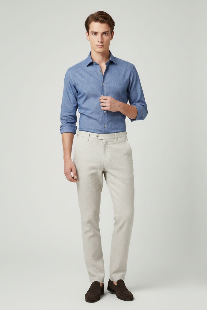Camicia in cotone elasticizzato in colore azzurro