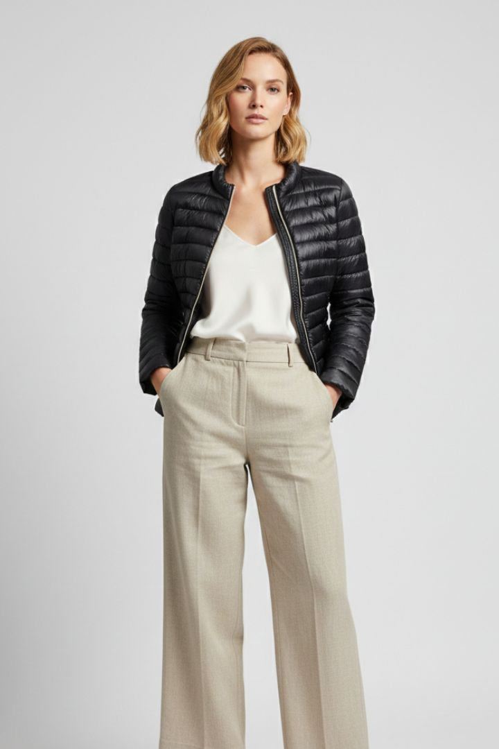 Giacchetto in micro piuma, 100 grammi, in colore nero