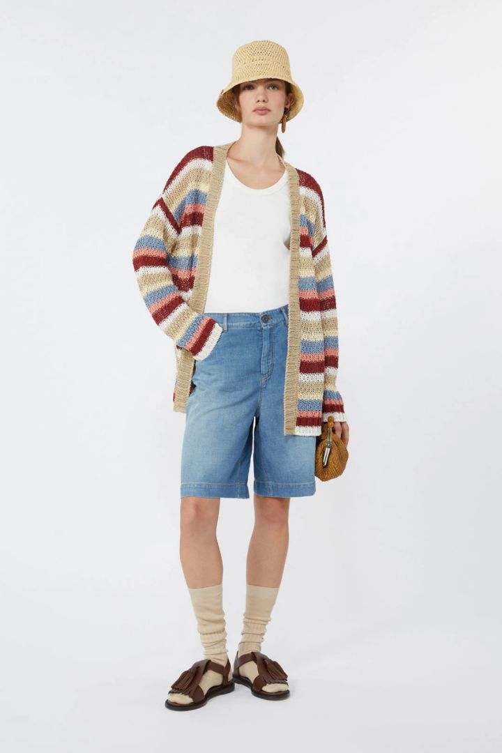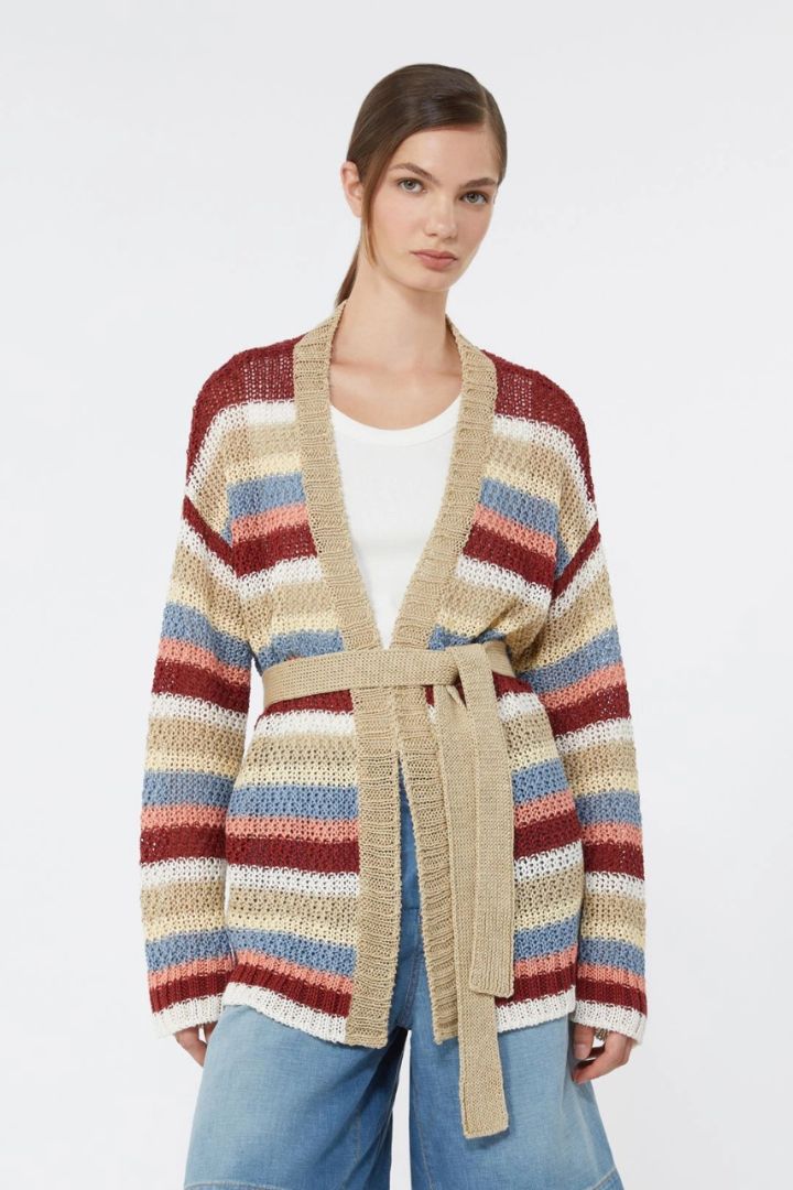 Cardigan dalla linea a vestaglia, rifinito da una lavorazione a punto riso.