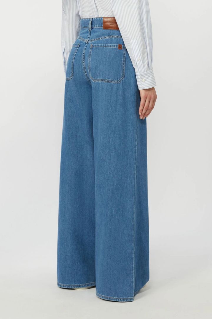 Abito in tessuto denim e cinturato, con tasche nel davanti